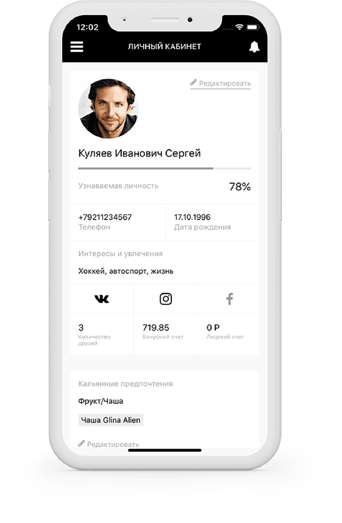 Мобильное приложение для известной кальянной сети Санкт-Петербурга, позволяющее гостям взаимодействовать с личным кабинетом, бонусным счетом, бронировать столик, а также управлять устройствами освещения.